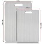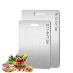 【EXTREMELY EASY TO CLEAN】; With our stainless steel cutting boards. you can get rid of stains and odors from wooden and plastic cutting boards. Food and liquids will not stick to the stainless steel cutting board. This stainless steel cutting board is easy to clean. Simply wipe it with water and it’s ready to use. The lightweight design is easy to carry and can be hung when not in use. which not only ensures cleanliness. but also adds a touch of elegance to the kitchen.