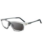 These glasses seamlessly transition from clear indoors to a sophisticated gray tint under UV exposure. by minimizing exposure to UV rays. our glasses can help slow down ocular photodamage. contributing to the preservation of your eye health over time.