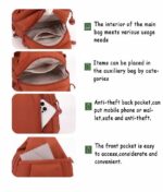 Scientific partition storage system: equipped with multiple compartments. anti-theft hidden pockets. and multiple functional pockets. the storage is well-organized.