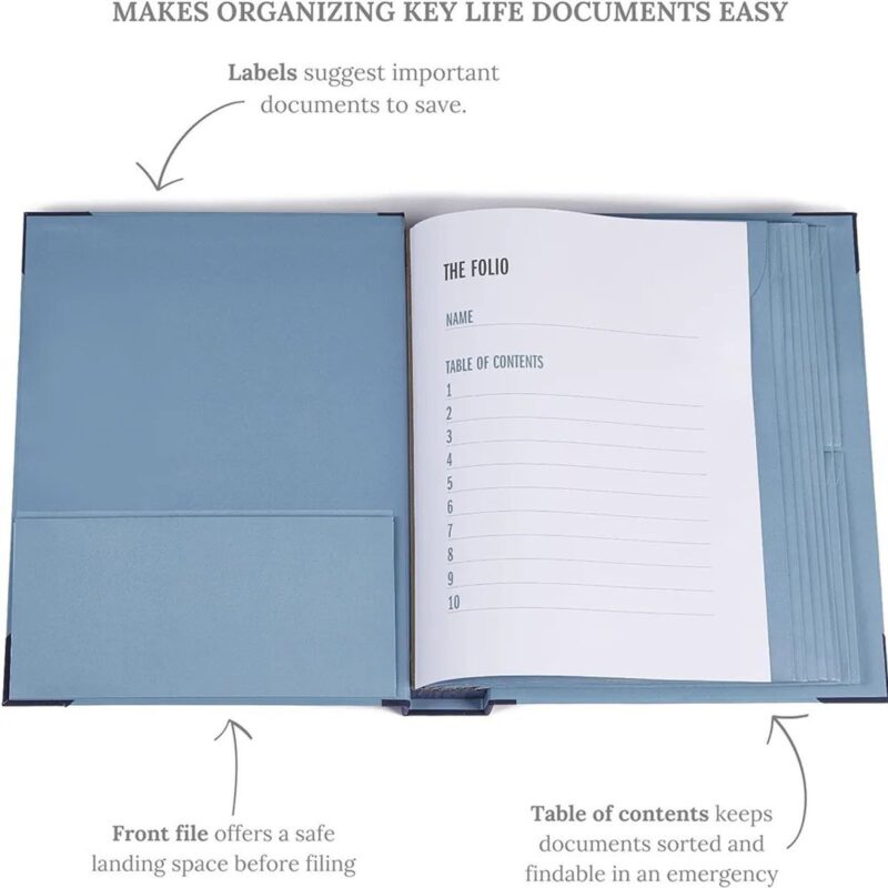 The Folio Document Organizer is the book you’d grab if the house were burning down. A life binder with a set of 10 expandable. resealable envelopes and files of different sizes organize important documents from estate plans to passports to financial records to your favorite recipes.